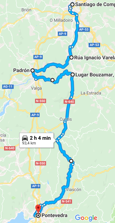 Quien se anime a acompañarme, saldré sobre las 10:00 de Santiago, y pasaré sobre las 10:20 por Pontevea y a las 11:00 por Cuntis.